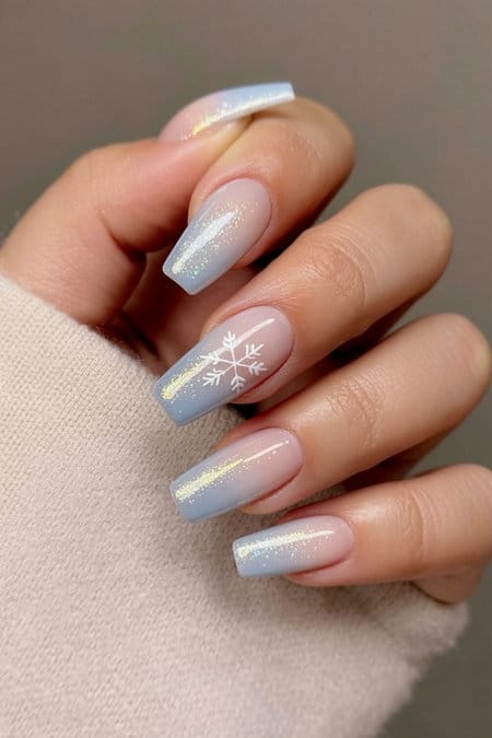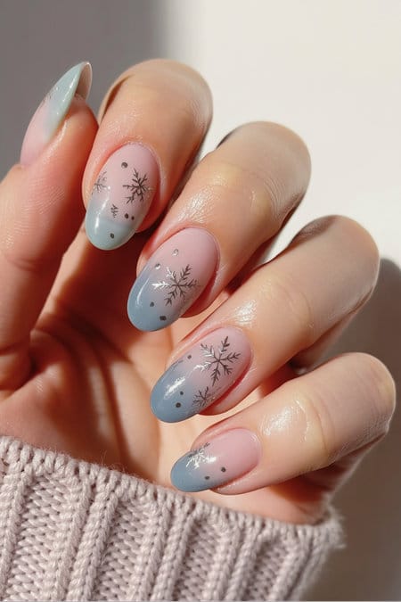 Pale Blue Ombre & Silver Chrome Snowflakes