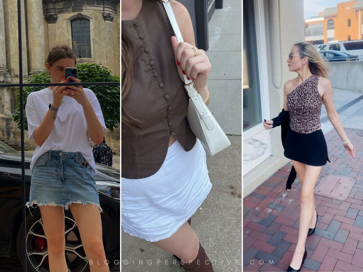 I’ve been collecting outfit ideas because styling them can be tricky sometimes (or is it just me?). Too dressy and it’s weird. Too casual and it feels boring. These outfit combinations hit that sweet spot though! Some are more night-out vibes and others work for daytime. The key is balancing proportions – like pairing your mini with the right top and shoes to make the whole thing look intentional.