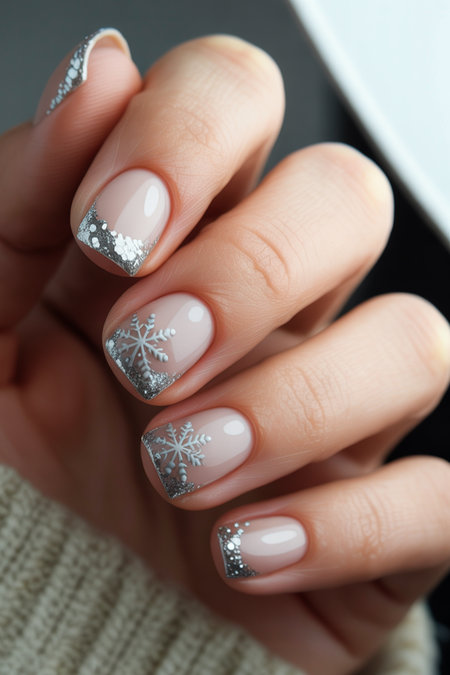 Glitter tips is always fun! Adding snowflakes makes them perfect for winter season. Silver glitter sparkles so pretty in light and the snowflake details makes it feel special rather than generic.
