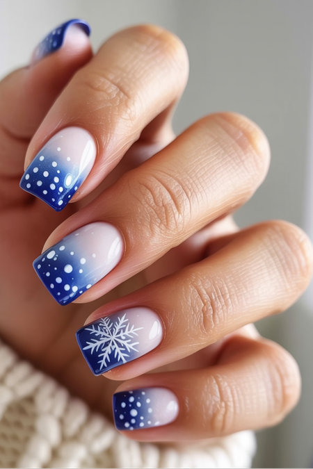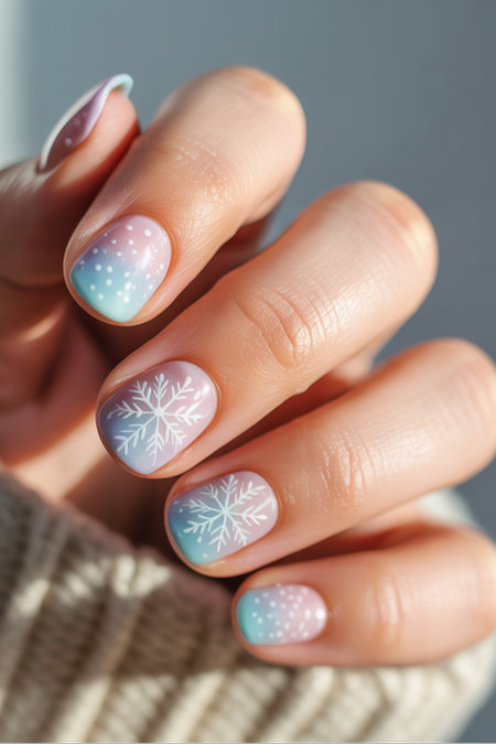 It literally looks like snow is falling on your nails. The ombre makes everything soft and frosty without being too much. Really good if you want something subtle that still says winter. So cute!