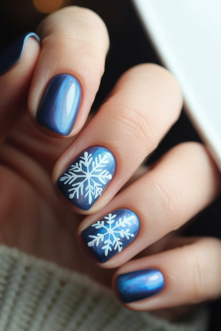 Chrome but in blue this time which is different! The metallic finish gives you that icy cold look. Snowflakes adds some texture to break up the smoothness and chrome is so popular right now anyway.