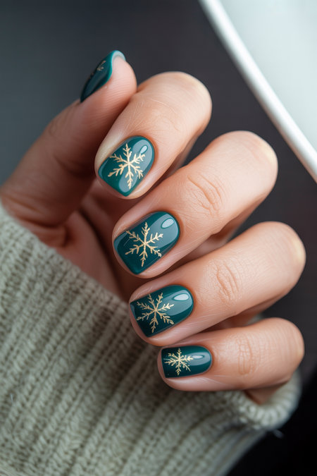 The green and gold together are very Christmassy but you can also do this in Janurary if you want to extend the festive vibes! Deep green is so rich looking here. Gold snowflakes adds the perfect amount of shimmer and glam to the whole design.