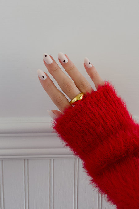 Red hearts on your nails. That’s it. And it looks so good! This is the classic one that everyone knows. I paint red hearts on each nail and people always say they love it, almond shape nails make the hearts look even better, but any shape works tbh.