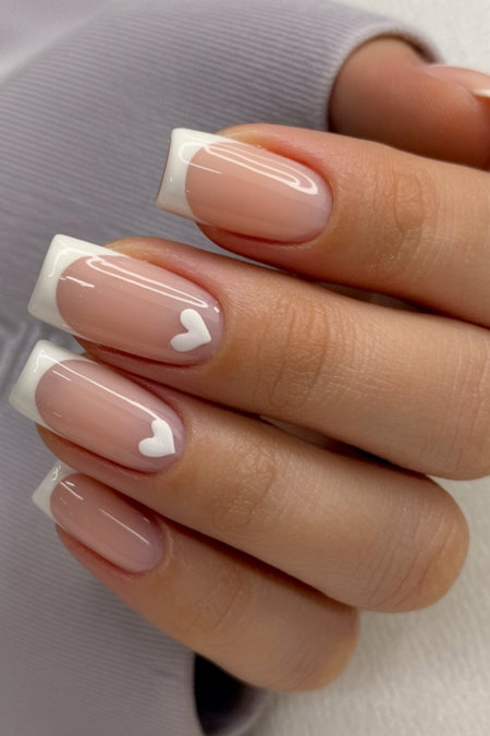 Square nails are my favorite shape sometimes. When you add French tips and then little white hearts, it’s perfect! Clean and modern but still has that romantic vibe going on, not too busy either.