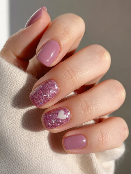 Not everyone likes long nails and that’s okay. Pink glitter on short nails looks amazing! Do a heart on one nail for the accent. Still cute but easier to deal with, the glitter makes it look fancy.