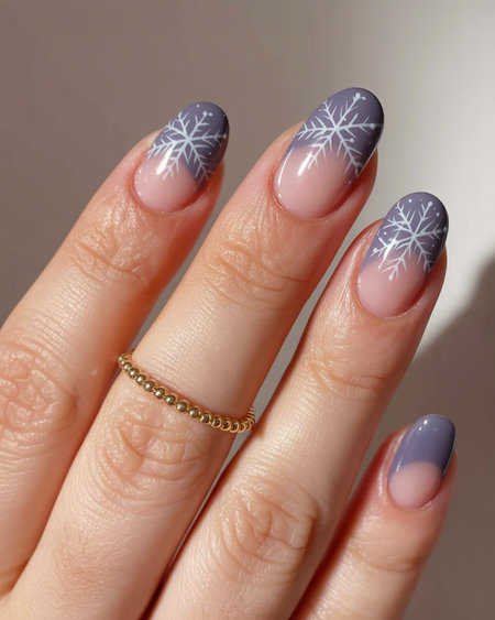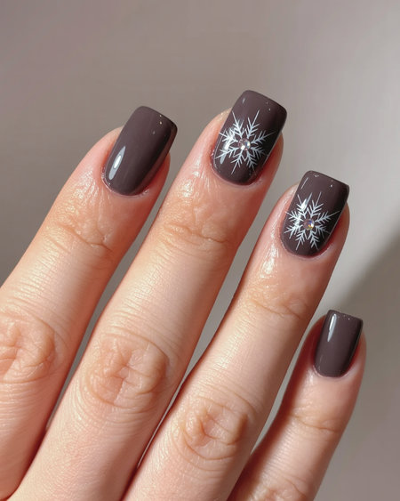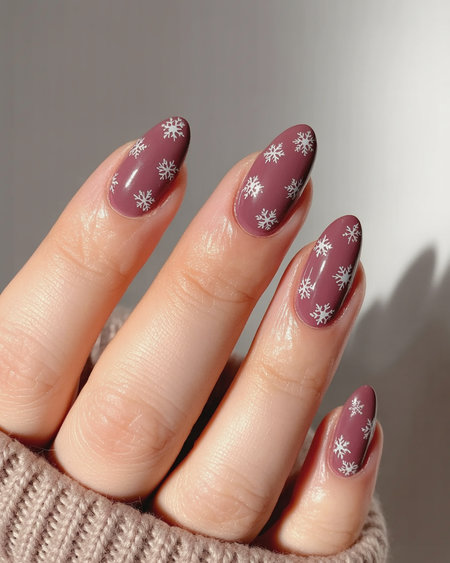 I love mauve for winter nails. It has purple and pink in it kinda, dusty looking. Super cozy feeling! Add little tiny snowflakes and wow. You can do white snowflakes or gray ones for lower contrast look, both are cute.