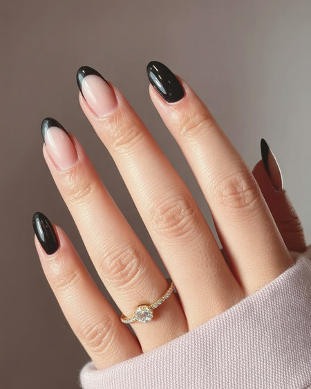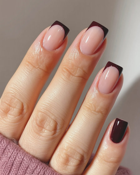 Short square nails are coming back. The black cherry tips are rich and deep, not as dark as black though. It’s moody but sophisticated! January is a good time for dramatic nails like this.