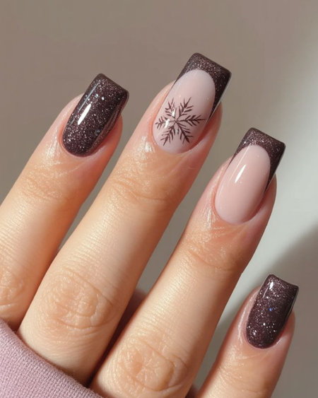 Ashy brown takes really good pictures. You add white snowflakes and some rhinestones and it’s a unique winter look. The brown part keeps it normal while the sparkly stuff makes it special and different.