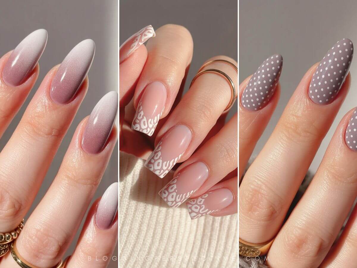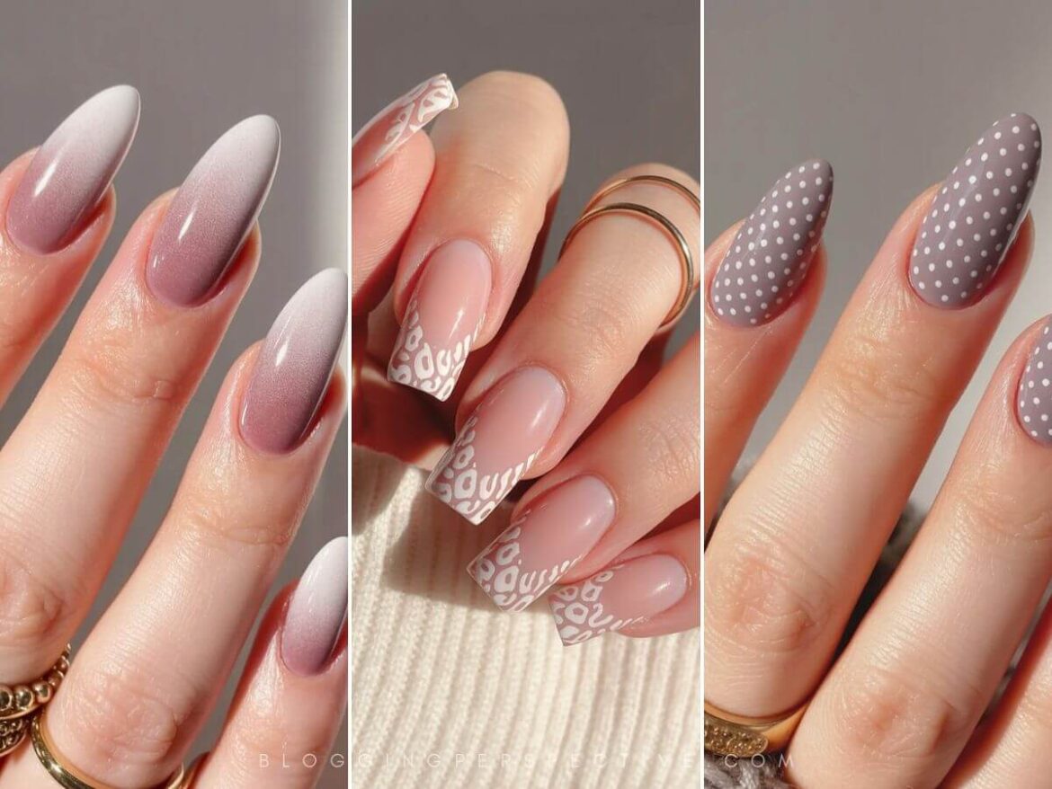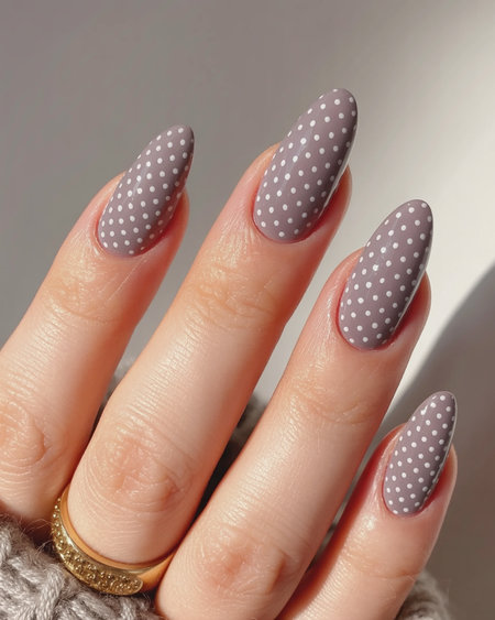 This design reminds me of old pictures from the 50s or something. Gray is fancy, and then white dots are playful! It’s different from other winter nails I see people doing. Perfect if you’re bored of the regular stuff but still want it to match the season.