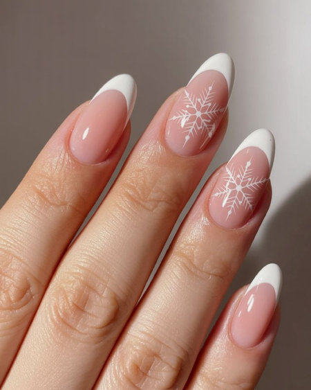 These are regular French tips but fancy. The lacy snowflake stuff on one or two nails makes it look expensive! I do this for special things mostly. But they look good enough you could wear them every day if you want.
