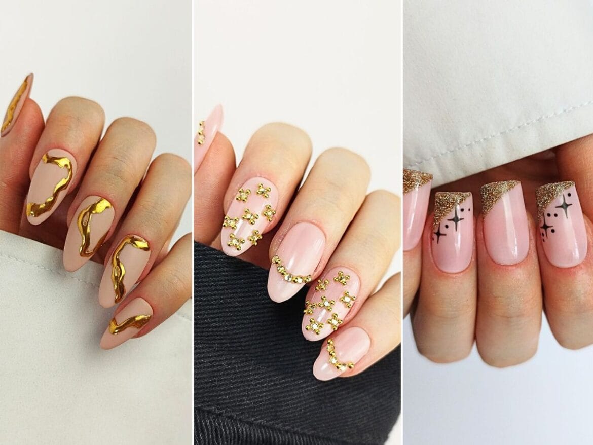 If your NYE plans include champagne and chandeliers, these gem nails will fit right in. Think of them as the designer accessory your nails have been waiting for—golden gems and caviar beads arranged to give your manicure that luxe vibe. It’s like jewelry, but for your hands.