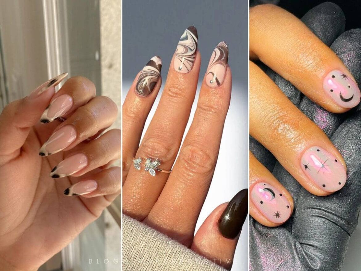 Try a delightful mix of warm brown shades and artistic swirls for your November nails. These nails remind us of coffee and chocolate deserts, a yummy combination at your fingertips.