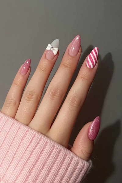 So fun! The sheer pink has candy cane stripes made with white and glitter going diagonal, it’s festive but not too Christmas if you know what I mean.
