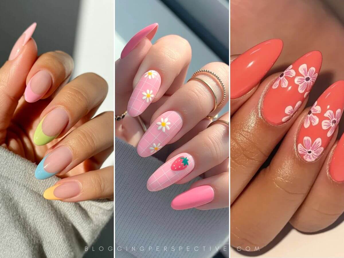 14 Long almond pastel nails cream pink coral hot pink_bp