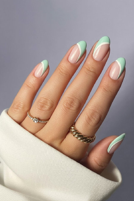 Pastel Green Almond French Tips