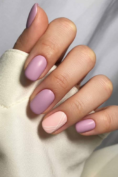 This dusty mauve color is moody but still spring-appropriate somehow. Light pink accent nail with black botanical details – the contrast is really cool. Short square shape keeps it modern. These feel more artistic than your average spring nails. Like you’d get compliments on them for sure. The color combo is unexpected which I love. Not the usual pastels everyone does.