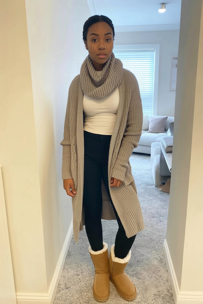 Sometimes you just need maximum comfort and this long cardigan with infinity scarf, leggings and Uggs situation is it. This is perfect for those 8am classes when you literally cannot be bothered. It’s basically like wearing cozy pajamas to class and nobody can judge you for it.